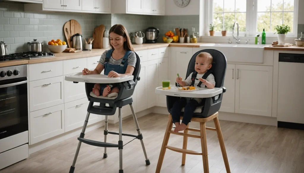 La capacité des chaises hautes à évoluer avec l’âge de votre enfant est une bénédiction. En investissant dans un modèle multi-âges, vous accompagnez la croissance de votre enfant sans devoir changer de chaise tous les ans. La nature réglable de ces chaises vous permet d’ajuster la hauteur, l’angle et les accessoires pour un confort adapté à chaque étape de sa croissance. Certains modèles se transforment habilement en petites chaises pour les jeunes enfants, ou en mini-bureaux où plus tard, ils pourront libérer leur créativité à travers le dessin ou l’apprentissage des premiers mots.